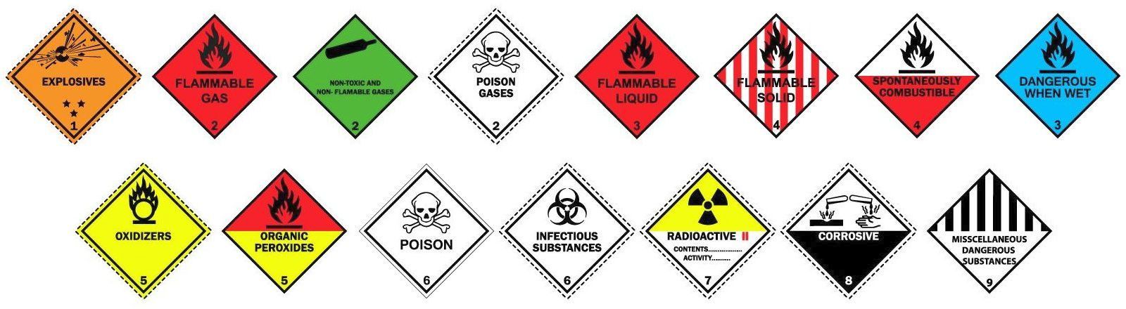 ADR/RID predpisy definujú presné farebné kódy pre nebezpečné látky: